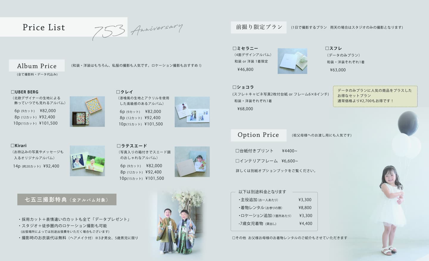 A:ご安心ください。いい表情でお撮りするのが我々の仕事です。万一表情がでなかった場合には、日にちを変えて再撮影をしても追加料金等発生しません。